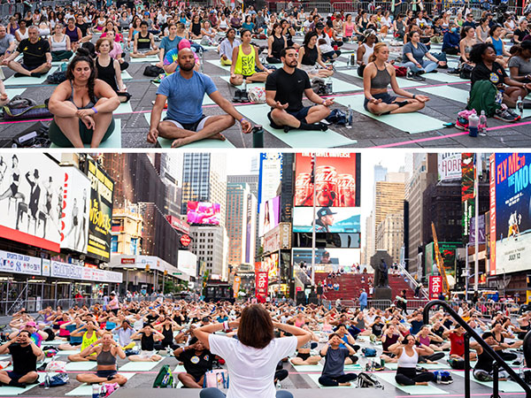 सैकड़ों योग उत्साही, पर्यटक और न्यूयॉर्क के निवासी भोर में ही अपने आसन बिछाकर इस सत्र में शामिल हुए, जिसमें भारत की प्राचीन स्वास्थ्य परंपरा को दर्शाया गया। नौसिखियों से लेकर अनुभवी योग साधकों तक, इस कार्यक्रम में विविध लोग शामिल हुए, जिसमें मैनहट्टन के ऊंचे बिलबोर्ड और हलचल भरे माहौल के बीच योग आसन किए गए।