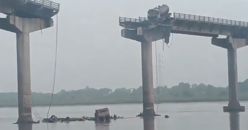 दो ट्रक, एक बोलेरो एसयूवी और एक पिकअप वैन सहित चार वाहन पुल पार कर रहे थे, तभी सुबह के व्यस्ततम यातायात समय में पुल का एक हिस्सा अचानक टूटकर वडोदरा ज़िले में महिसागर नदी में गिर गया।